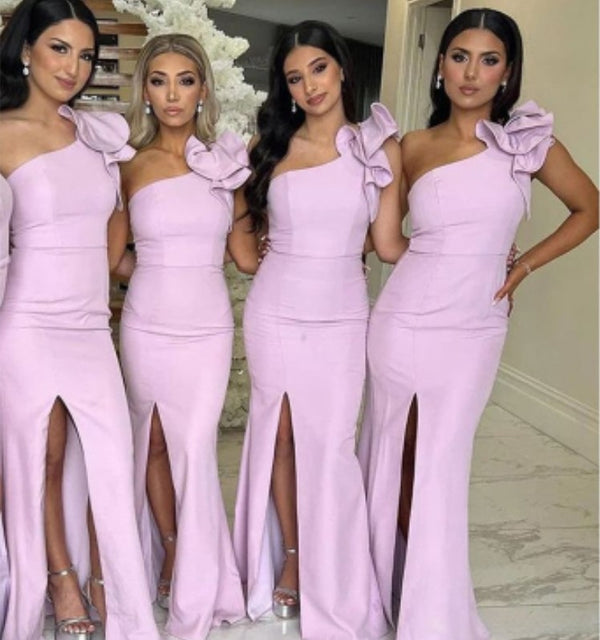 Elegant Mermaid One Shoulder Side Slit Popular Cheap Maxi Long Wedding Guest Bridesmaid Dresses,WGM251