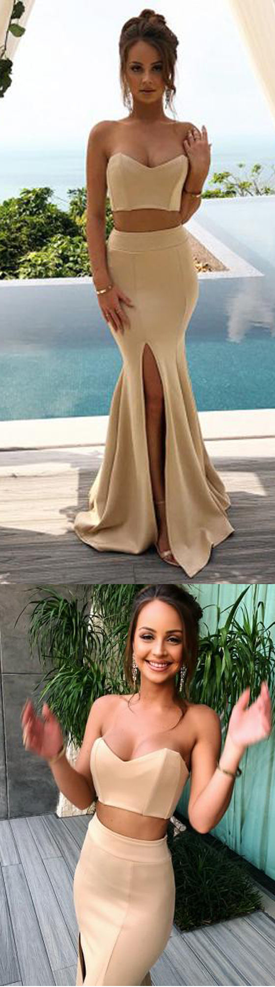 Elegant Two Pieces Sexy Cheap Sweetheart Mermaid Long Bridesmaid Dresses, WG465