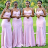 Elegant Pink Mermaid Sweetheart Spaghetti Straps Side Slit Popular Cheap Maxi Long Wedding Guest Bridesmaid Dresses,WGM281