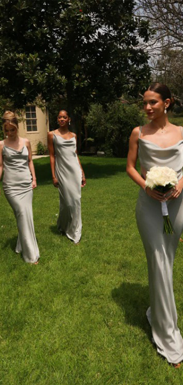 Elegant Spaghetti Strap Sleeveless Mermaid Side Slit Long Bridesmaid Dresses Online, WGM413
