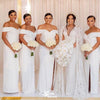 Elegant White Mermaid Sweetheart Off Shoulder Sleeveless Side Slit Popular Cheap Maxi Long Wedding Guest Bridesmaid Dresses,WGM318