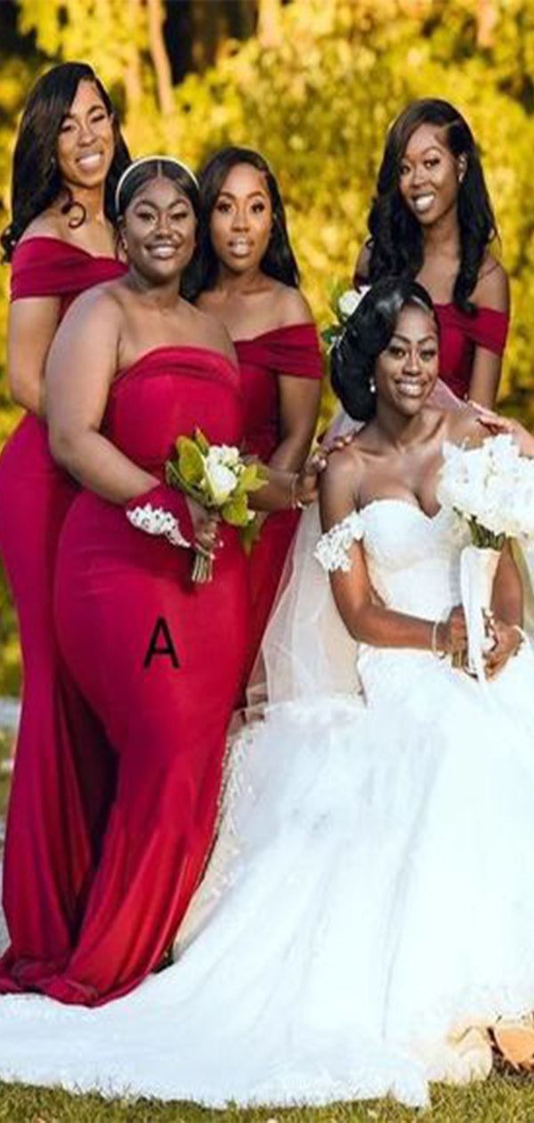 Mismatched Red Mermaid Popular Cheap Maxi Long Wedding Guest Bridesmaid Dresses,WGM259