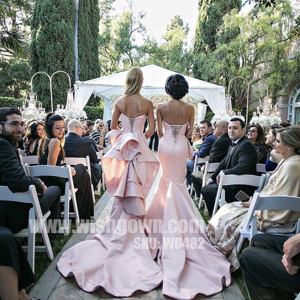 Pink Mermaid Sweetheart Unique Charming Long Wedding Bridesmaid Dresses, WG482