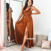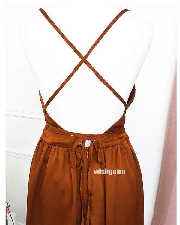 Pretty V-neck Side Split Long Bridesmaid Dresses, YPS154