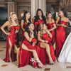 Red Off Shopulder Soft Satin Mermaid Sexy Long Wedding Bridesmaid Dresses, WGM065