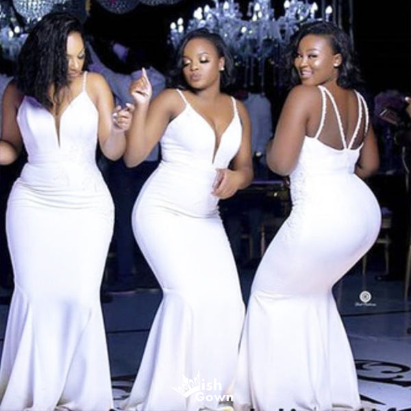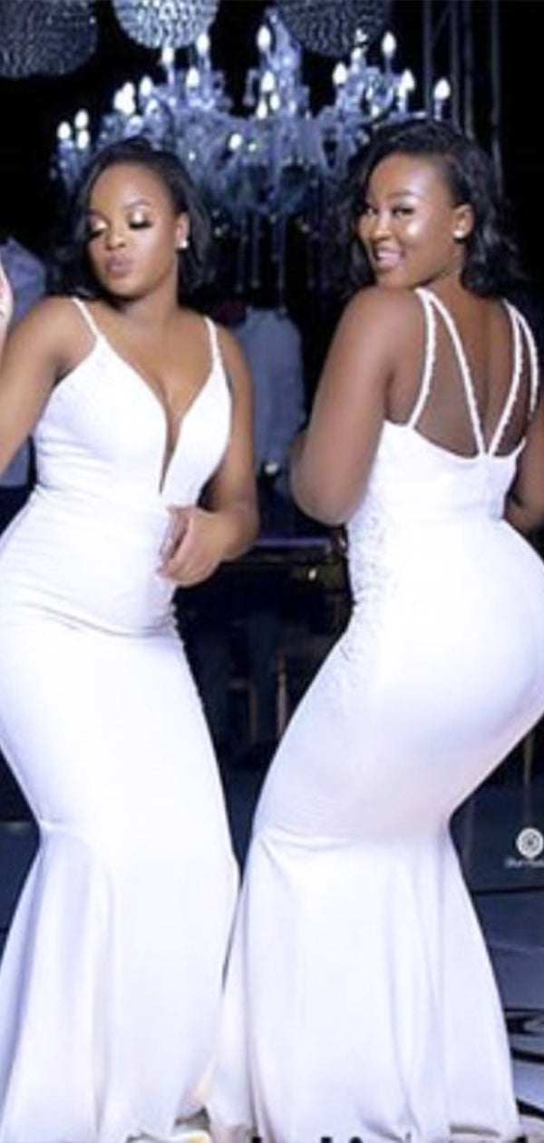 Sexy Mermaid Spaghetti Straps V Neck Sleeveless Popular Cheap Maxi Long Wedding Guest Bridesmaid Dresses,WGM322