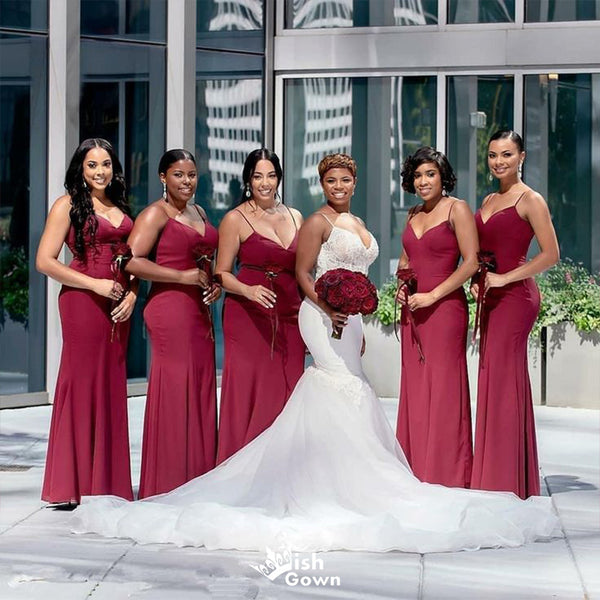 Sexy Mermaid Spaghetti Straps V Neck Sleeveless Popular Cheap Maxi Long Wedding Guest Bridesmaid Dresses,WGM338