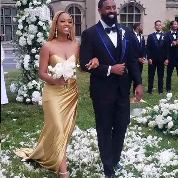 Sexy Mermaid Off-Shoulder Sweetheart Side Slit Sleeveless Wedding Guest Bridesmaid Dresses,WGM380