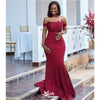 Unique Dark Red Mermaid Off Shoulder Popular Cheap Maxi Long Wedding Guest Bridesmaid Dresses,WGM274