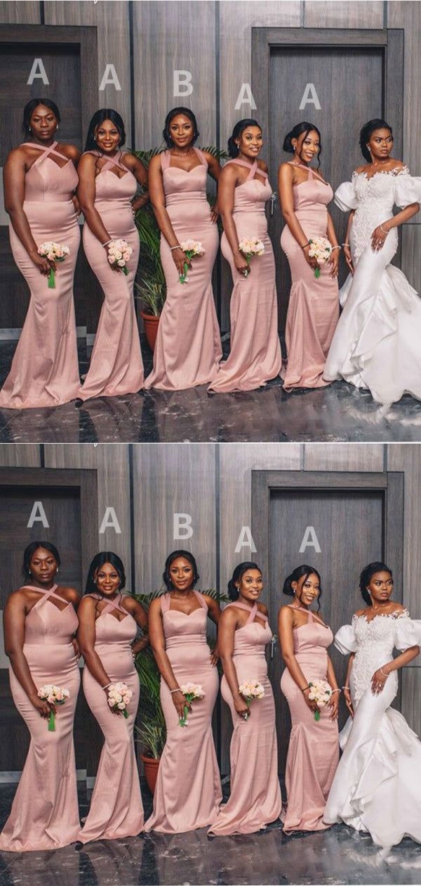 Popular Pink Mermaid Sleeveless Cheap Maxi Long Wedding Guest Bridesmaid Dresses,WGM341