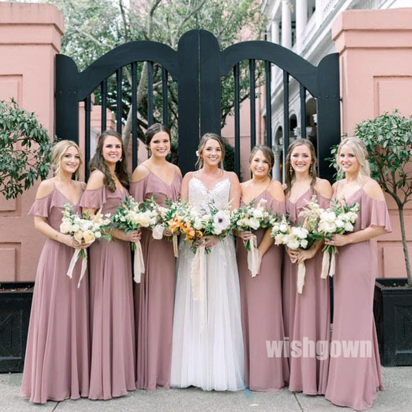 Young Girls Chiffon Pretty Cheap Long Bridesmaid Dresses, WG374