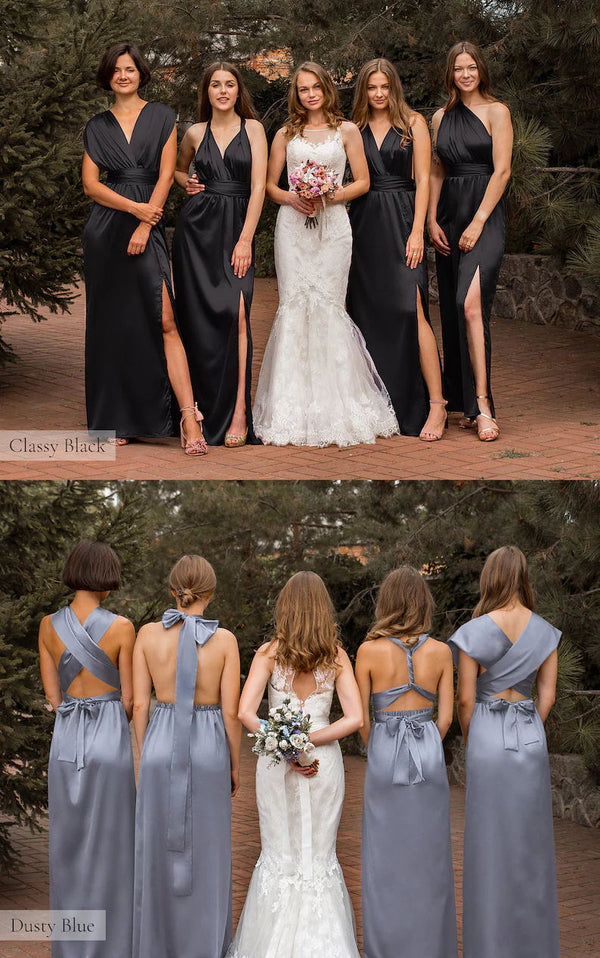 Burgundy Mismatched Soft Satin Backless Sits Long Sheath Bridesmaid Dress, WGM034