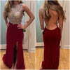 Gorgeous Open Back Burgundy Sexy Mermaid Inexpensive Long Backless Side Slit Prom Dress, PD0027