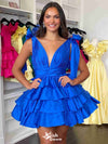 Elegant Blue V-Neck Ball Gown Sleeveless Popular Cheap Short Homecoming Dresses, Birthday Party EPT229