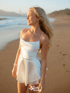 Sexy White Spaghetti Strap Tight Flower Lace Popular Cheap Short Homec