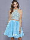 Sky Blue Two Pieces Sparkly Open Back Chiffon A-line Homecoming Prom Dress, WGP042