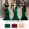 Emerald Mermaid Off Shoulder Floor length Wedding Guest Bridesmaid Dresses, WGM112