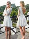 Long Sleeves Full Lace V Neck Backless Summer Beach Bridal Homecoming Graduation Cocktail Dress, WGP052