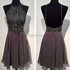 Dark grey sparkly special vintage open back sexy popular homecoming prom dress,BD0049