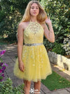 Elegant Halter Lace A-line Short Mini Homecoming Dress,EPT326