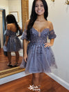 Elegant Purple Off-Shoulder Lace Sleeveless Popular Cheap Short Homecoming Dresses, Birthday Party EPT219