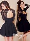 Black Open Back Long Sleeves A-line Mini Casual Cocktail Homecoming Pr