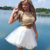 Sexy two pieces A-line scoop Tulle Beaded Backless formal homecoming p