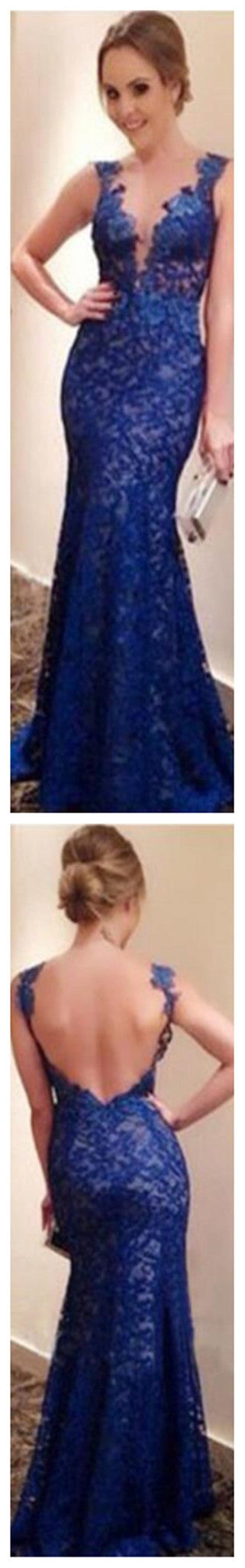 Long Blue Lace Sheath Cheap Sexy Backless Long Evening Prom Dresses Online, PD0110