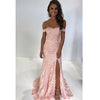 Pink Lace Off the Shoulder Sweetheart Side Slit Long Prom Dresses, SG116
