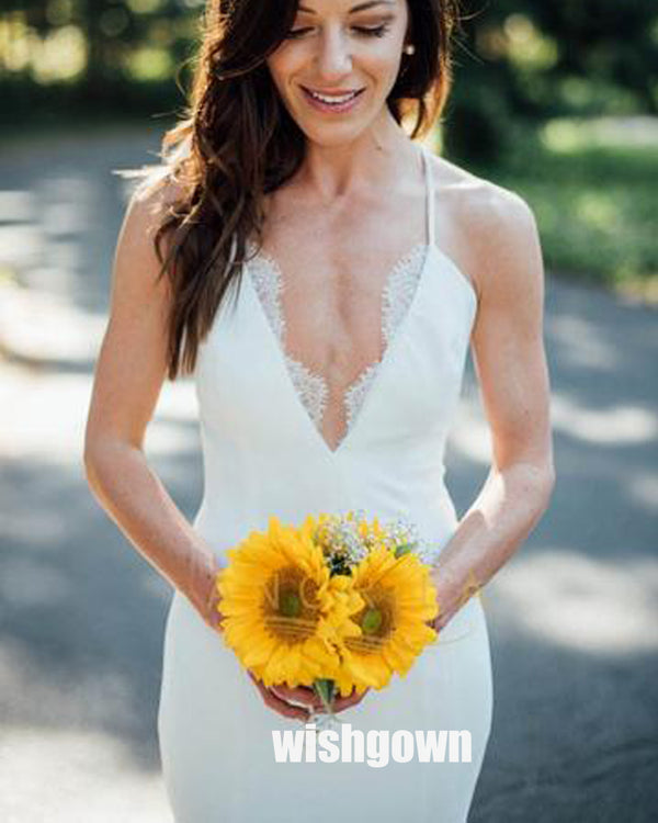 Elegant V-neck Spaghetti Strap Mermaid Long Wedding Dresses WDH040