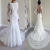 Gorgeous Round Neck Long Sleeve Sexy Mermaid Backless Lace Wedding Party Dresses, WD0040