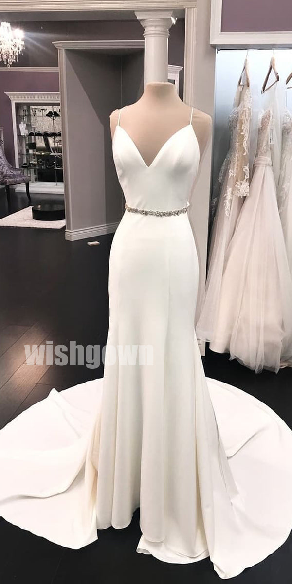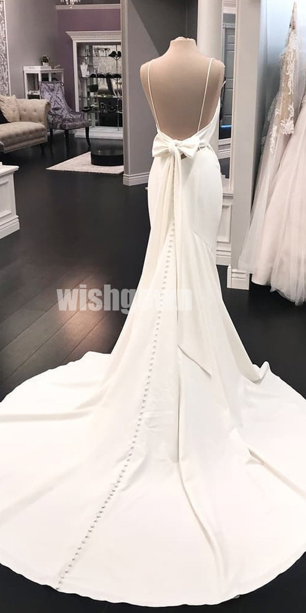 Spaghetti Strap Iovry Simple Long Wedding Dresses with Bow YH1117