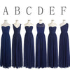 Classic Popular Navy Blue Mismatched Chiffon Formal Cheap Long Bridesm