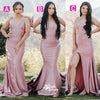 Mismatched Styles Pale Pink Soft Satin Spaghetti Straps Mermaid Long Bridesmaid Dresses, WGM097