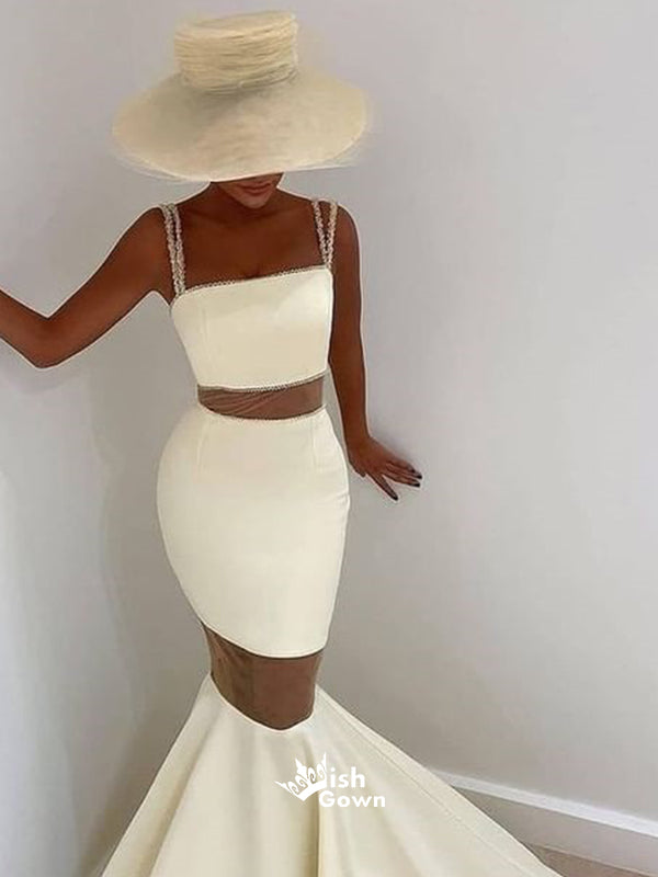 Classic Spaghetti Straps See-through Patchwork Mermaid Evening Gowns Prom Dresses, WGP204