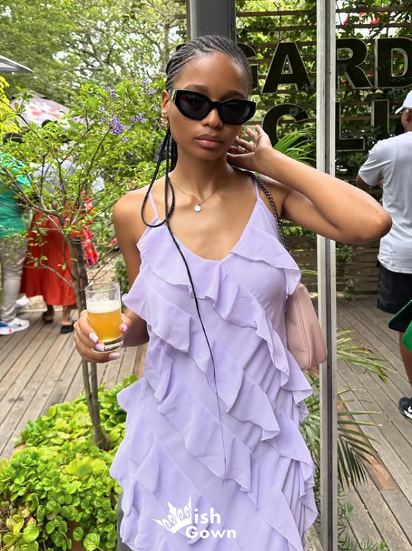Elegant Lilac Spaghetti Straps Sheath Long Party Dress Prom Dresses, WGP976