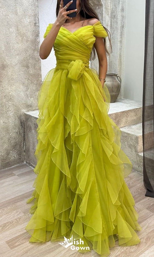 Gorgeous Off Shoulder Tulle Side Slit A-line Long Party Dress Prom Dresses,WGP1001