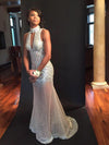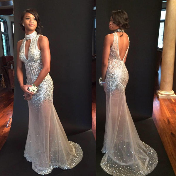 Unique Design Sexy See Through High Neck Backless Beaded Long Prom Dresses, WG273