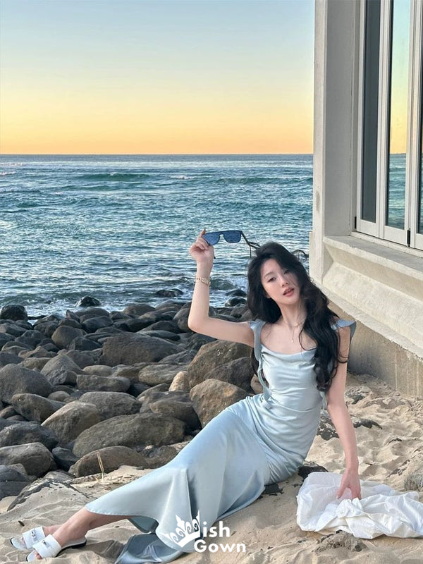 Stylish Blue Simple Sheath Long Party Dress Prom Dresses,WGP999