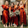 Soft Satin V-neck Short Sleeves Lace-Up High-Low Maxi Bridesmaid Dress