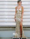 Sexy Gold Sequin Mermaid Shinning Spaghetti Straps Backless Prom Dress