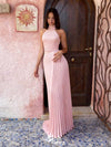 Elegant Pink High Neck Pleated Satin Prom Dress,Evening Gown,WGP2078