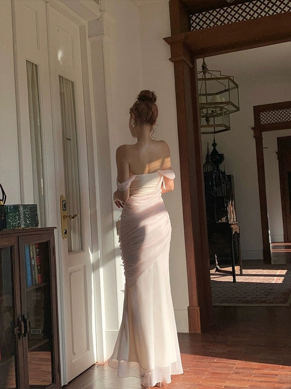 Floral Pink Off-Shoulder Mermaid Long Prom Dress Ideas, Evening Party Dresses,WGP1955