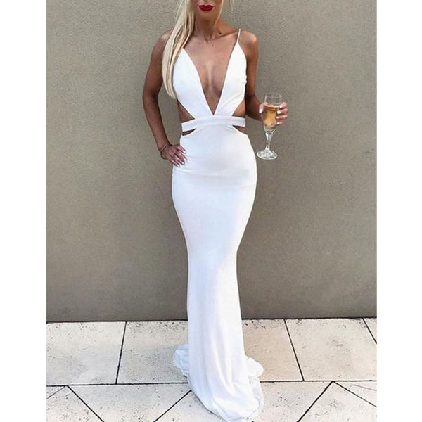 Sexy Deep V Neck Mermaid Cheap Long Prom Dresses, SG117