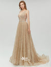Sexy Deep V Neck Sparkly Popular Evening Formal Long Prom Dresses, WG1096