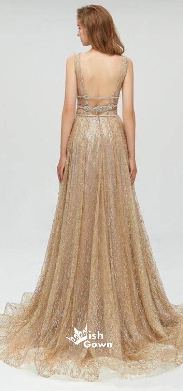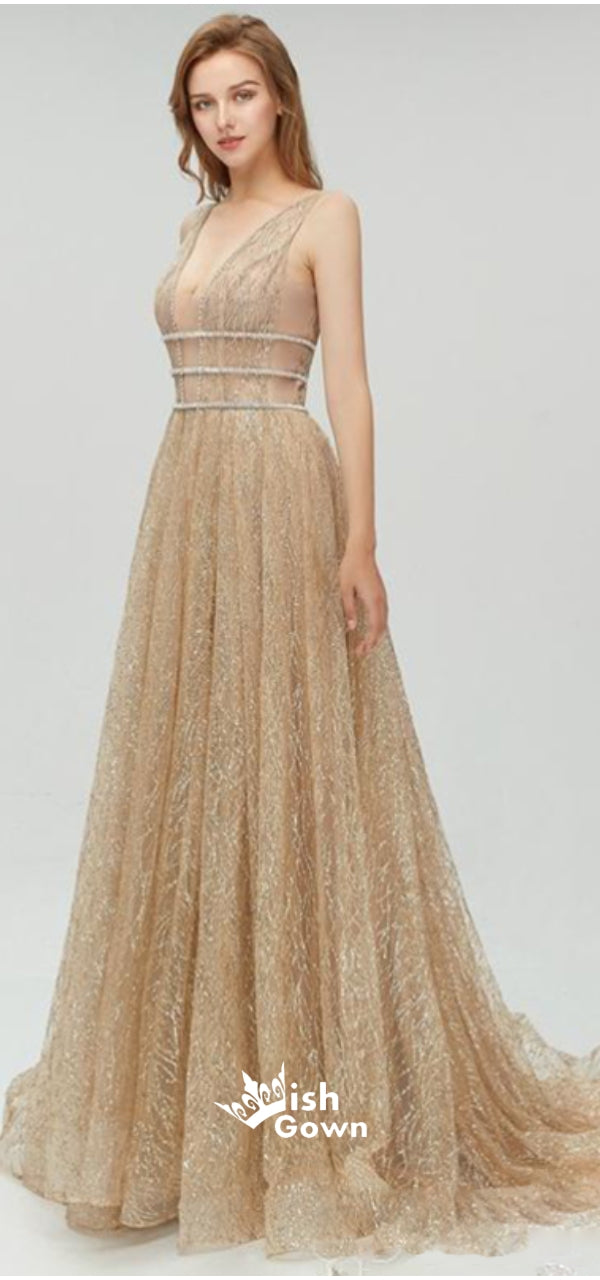 Sexy Deep V Neck Sparkly Popular Evening Formal Long Prom Dresses, WG1