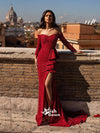 Elegant Red Long Sleeve Off Shoulder Sequins Side Split Mermaid Long P