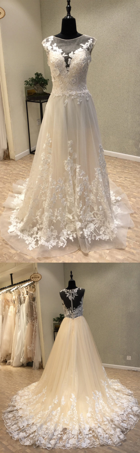 The wedding dresses are fully lined, 4 bones in the bodice, chest pad in the bust, lace up back or zipper back are all available.