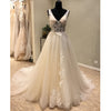 Charming V Neck Tulle Applique V Back Long Wedding Dress for Brides, WG1207