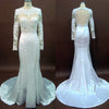 Long Sleeves Lace Mermaid Open Back White Long Wedding Party Dresses, WG613